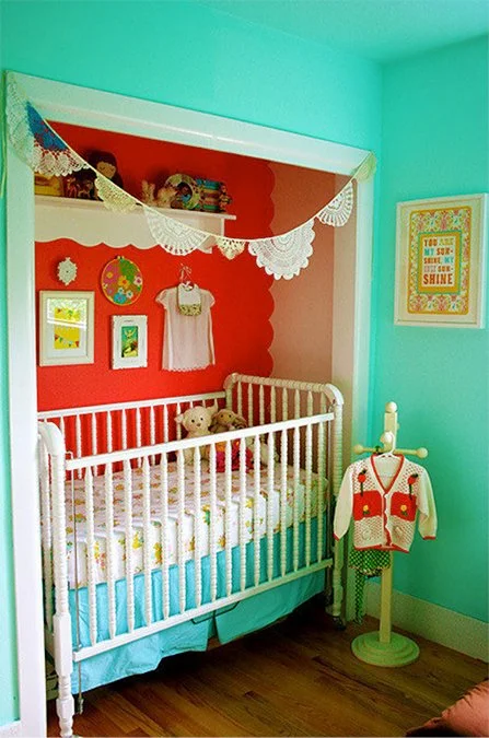Rimuovi le porte dell’armadio e spingi la culla contro la parete interna. È uno spazio perfetto per i bambini che condividono la stanza.