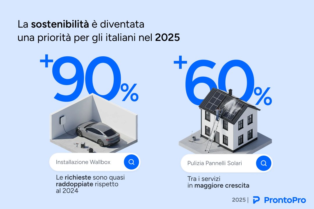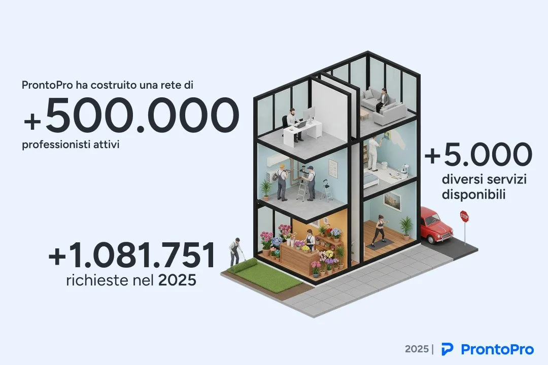 Casa, lavoro, benessere, sostenibilità. Tutto converge verso un’unica esigenza: trovare soluzioni affidabili, rapide e su misura. Ed è proprio qui che ProntoPro continua a fare la differenza, accompagnando persone e professionisti in un mercato dei servizi sempre più centrale per il Paese.
